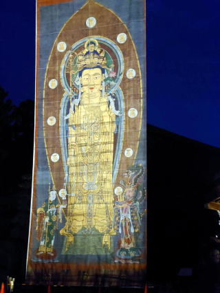 ![]() 夜間拝観時のライトアップの様子 |