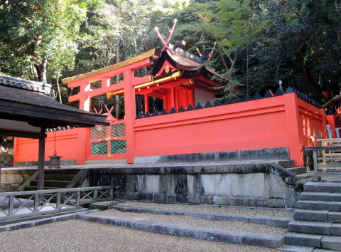 奈良駅南側商店街の中にあり、若宮おん祭の際に精進潔斎を行うところである。今回の修理は、木製鳥居の根元が腐食していたので、一旦引き抜いて修理を施し、ビニールパイプを嵌め込み立て直したほか、アルミゲートを取り付けた。