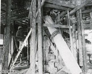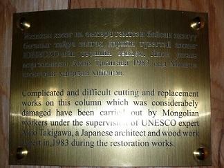 | 取り替えられた柱に取り付けられた修理銘板 |