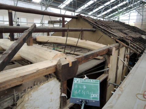 工事としては揚屋、地盤改良を行い、鉄筋コンクリート基礎を設け、礎石・石積据え直した。木工事は建入直し、梁交換、床組解体・復旧、敷鴨居補修・調整等半解体工事を行った。屋根は本瓦葺き、左官は漆喰・中塗り仕上げ、三和土のやり替えを行った。